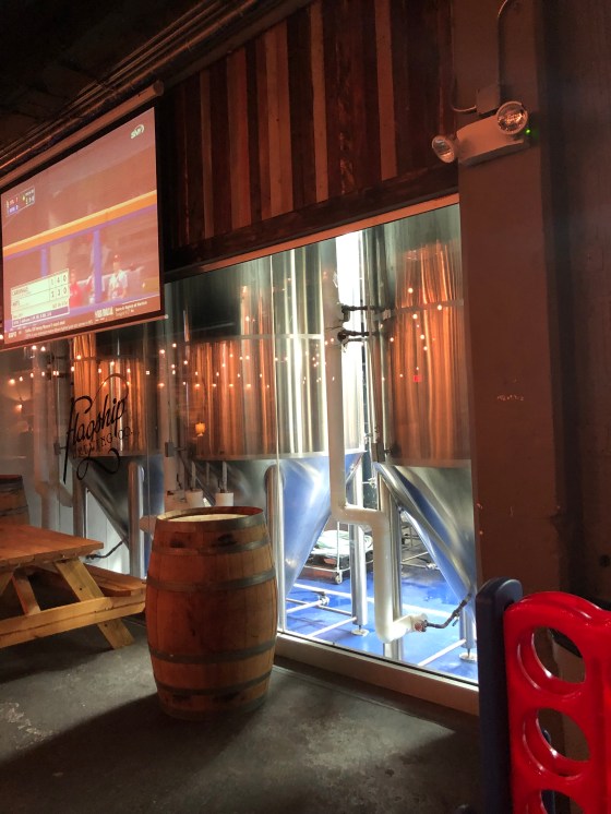 And then on to the brewery. Since I didn’t write anything down, this may not be accurate, but see the shiny tanks! Also food, guest taps and pinball machines. 27 July 2019