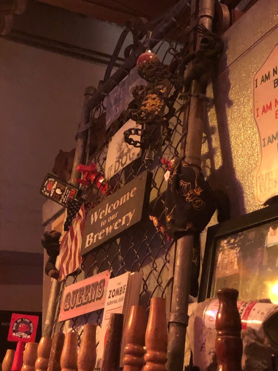 Since I’m something of a regular in the LIC brewery scene I was recognized by one of the bartenders. Hence the salute mentioned above. This location is much bigger than the Queens location which means room for more people, more barrels and more pups. Kelly thanked me for coming, but as a dedicated beer blogger I had to come. I asked if the live music was going to be a regular event and was told they are trying to get something going. They really should after all, someone built a stage! There is merchandise, including but not limited to a hoodie just like the one I was wearing except it had Brooklyn on it instead of Queens.