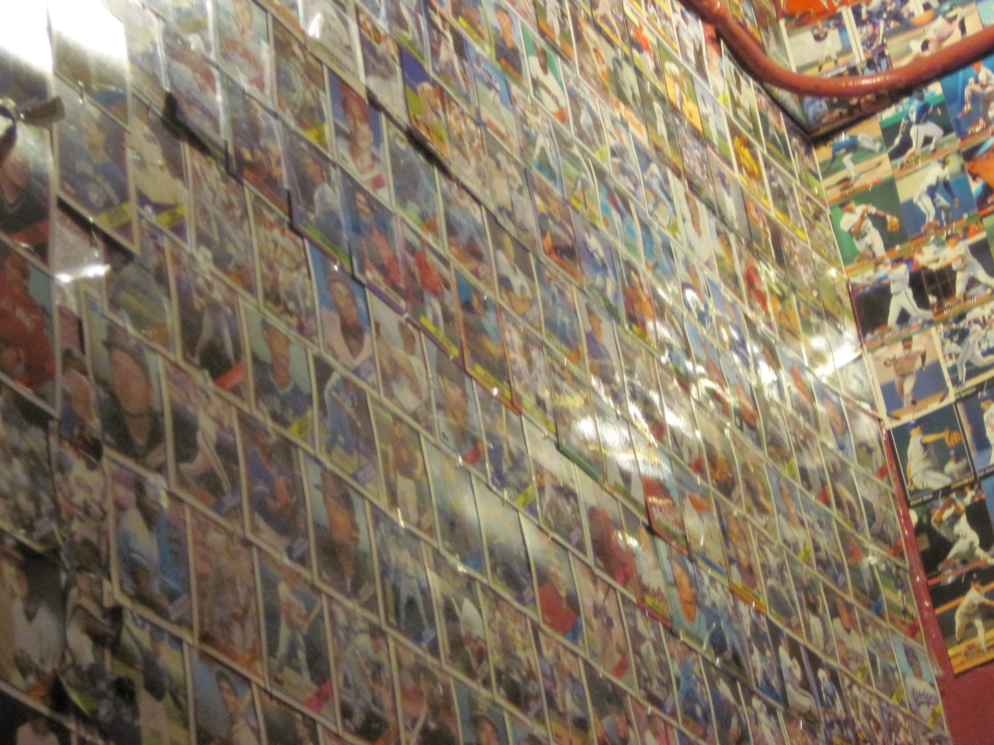 Foley’s is known as “An Irish pub with a Baseball Attitude!” There is sports memorabila all through Foley’s from all sports, but there is more baseball than any other sport. The walls are filled with autographed baseballs in cases, they are arranged in sections, “Perfect Game”, “No Hitter” and so on. Near the ceiling are seats from Camden Yards, Shea Stadium, Fenway and Yankee Stadium. The ladies room is downstairs and on the walls going down there are baseball cards, the walls are completely covered with them. The menu has specials relating to different baseball teams and there are a couple that if you order them, a portion of the profits is donated to that player’s or team’s charity. “Swish and Chips” gives money to Swish’s Wishes and “Dave Robertson Chicken Pot Pie” (which is really good) gives money to High Socks for Hope. There could be others, but I don’t remember.