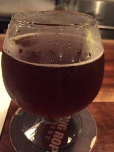 Although I have been getting flights so I could try a variety of beer I abandoned this practice at Strong Rope because they had a “Wee Heavy”, which is one of my favorites. They also have a stout with the name “Loneliest Nomad”. It was busy the night I came, but not crazy. The taproom is pretty with a polished wood bar. Besides 8 to 9 taps, they also serve wine, cider and spirits. No food, outside food is allowed and the bartender will give your phone a charge if you ask nicely.