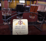 It is very interesting seeing how different places keep track of the beer you get in a flight. Greenpoint had a card to write the beer down on, here, the beertender stood by the taps, and as you picked a beer he set a glass under the tap. They had these wrought-iron holders to put the glass in. I asked how long they had been in the Bronx and in doing so got the answer to why Chelsea Brewery was in the Bronx. The brewery opened in Chelsea in 1995, a few a years ago they moved to the Bronx. Since they were already known as Chelsea Brewery, they kept their name.